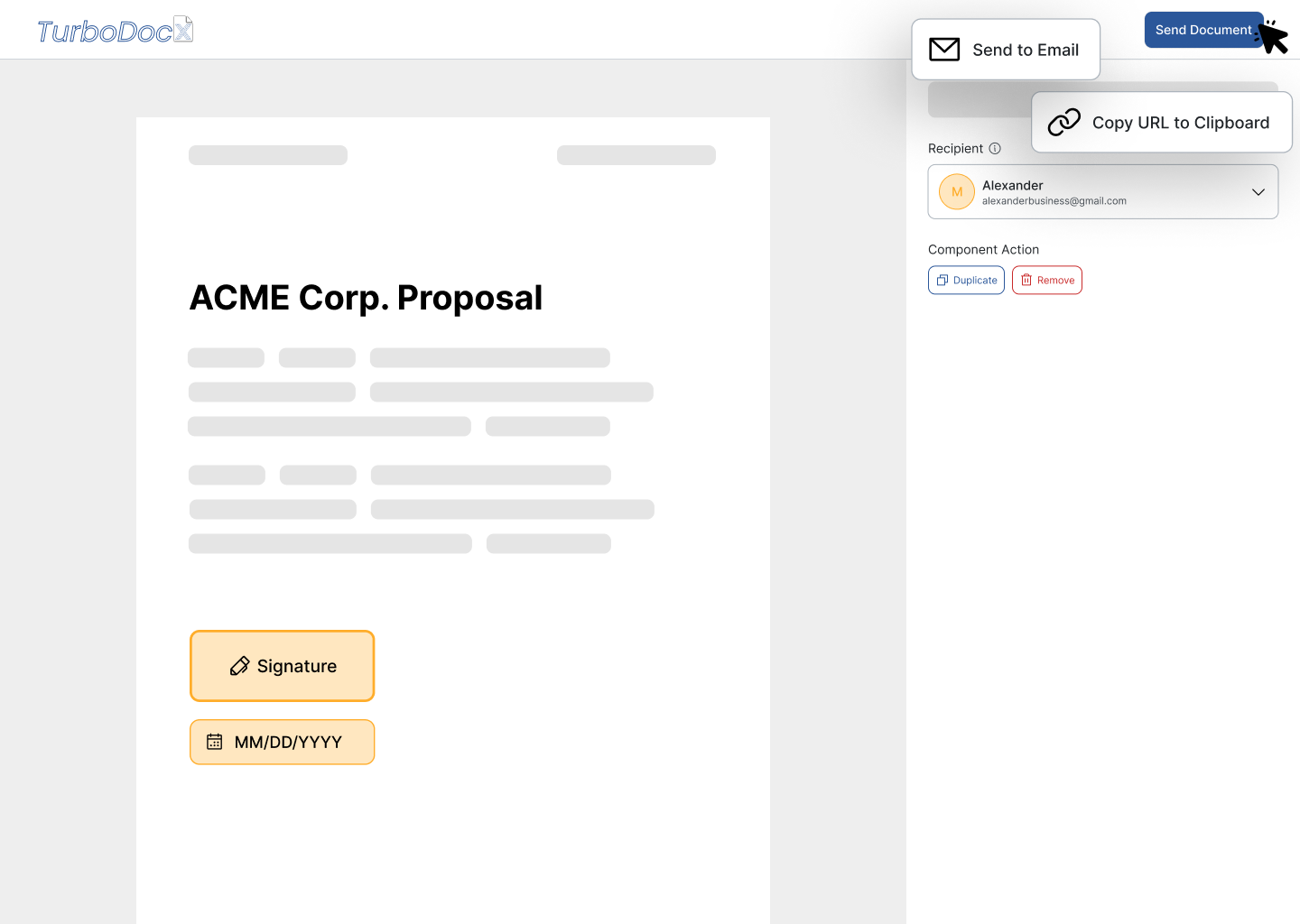 Drag and drop signature boxes, date fields, full name fields, and initials. Place signature fields exactly where you need them with our intuitive interface.